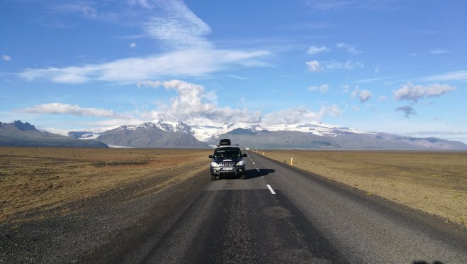 Für einen kurzen Offroad-Test verlassen wir die Ringstraße. Jedoch erweist sich der Weg wegen des flachen Landes als schnelle Schotter-Waschbrett-Piste. Nicht ganz unser Fall. Für so etwas sind eher die großen Reifen vieler Isländer gemacht.
